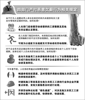 春节临近,拖欠农民工工资问题将进入易发、高发期。记者今天从人社部获悉,该部与最高人民法院、最高人民检察院、公安部近日联合下发《关于加强涉嫌拒不支付劳动报酬犯罪案件查处衔接工作的通知》(以下简称《通知》),严厉打击恶意欠薪行为,进一步完善劳动保障监察执法和刑事司法衔接机制。