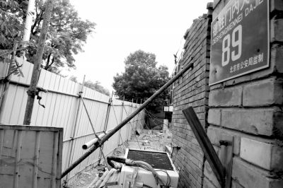 昨天下午,记者来到德内大街93号院,该院门口就是德内大街,塌陷的路面早已修好。透过近3米高的蓝色钢板围挡,记者看到93号院内仍是一片废墟,里面堆放着很多建筑垃圾。