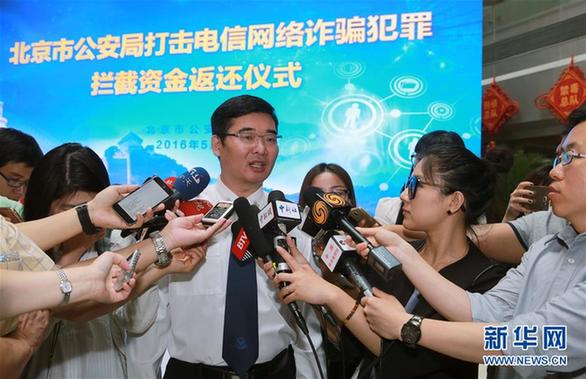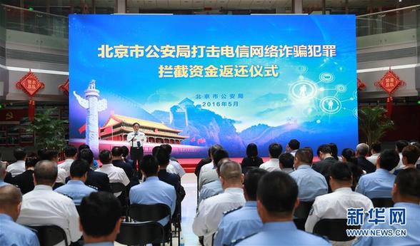 北京市公安局打击电信网络诈骗犯罪拦截资金返还仪式(5月18日摄)。新华社记者 殷刚 摄