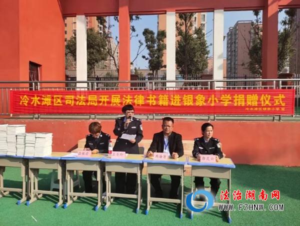 法治湖南网12月18日讯(通讯员 于颖 唐灵云)为增强青少年法治意识,构建平安法治校园,12月16日,永州市冷水滩区司法局在银象小学足球场举行以“遵纪守法、热爱祖国”为主题的法律书籍捐赠活动和法律知识抢答赛。区司法局领导、银象小学全体师生以及一百名学生家长代表参加此次活动。