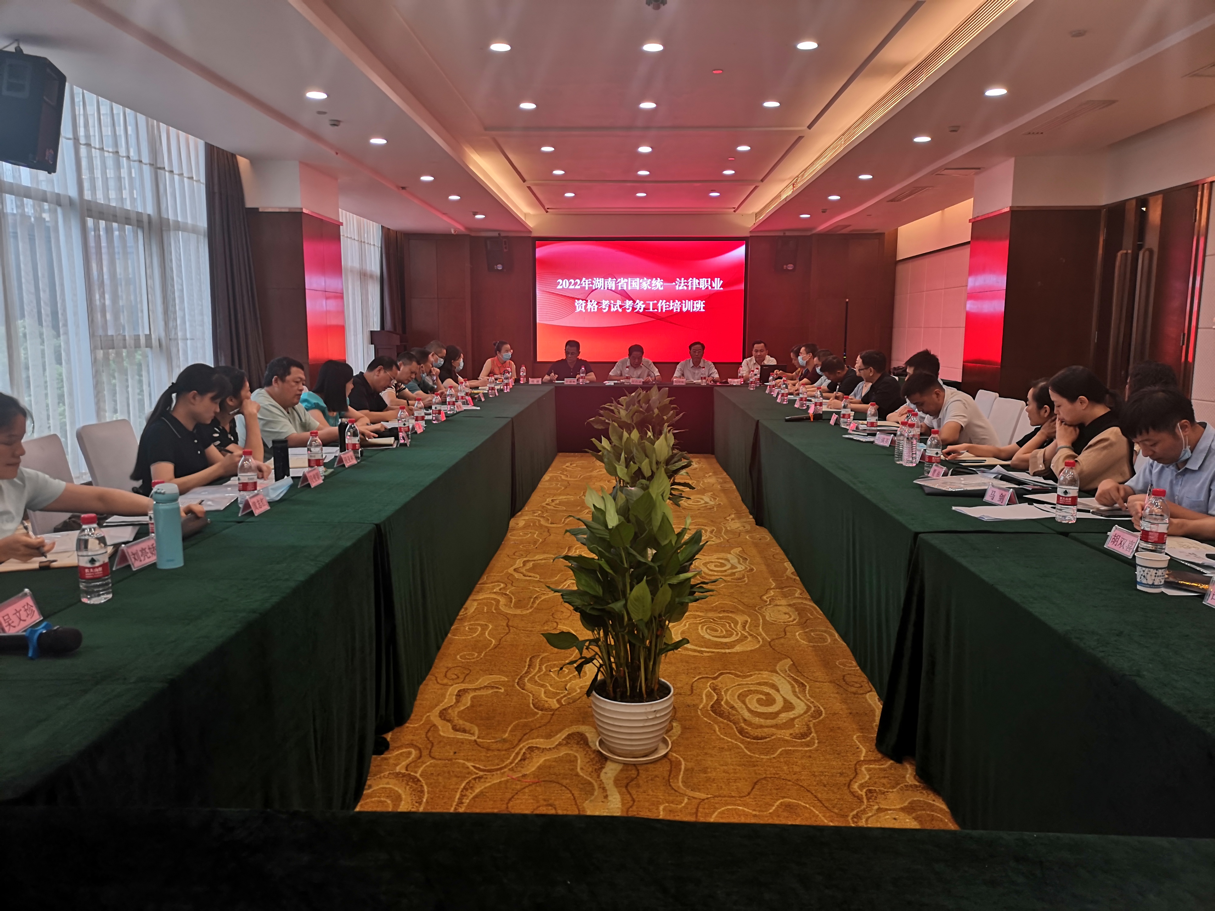 培训班传达了司法部全国司法厅(局)2022年国家统一法律职业资格考试工作座谈会精神,分析了今年考试的新形势新任务,对全省2022年考试组织实施工作进行了部署。培训班针对今年特殊的考试形势和任务,精心安排了培训科目,专门邀请省卫健委疾控部门的专家,分析解读我省当前的疫情防控形势、对组织大型考试如何进行疫情防控进行了培训,重点对省司法厅、省教育厅、省卫健委联合印发的《新冠肺炎疫情防控常态化下湖南省国际统一法律职业资格考试防疫工作方案》进行了专业权威讲解。厅职业资格与交流处有关负责同志和技术服务公司分别就今年考试工作80项风险管控问题和考务管理平台、考务安全管理系统的使用进行专题解读和培训,培训现场并深入探讨交流了今年考试组考的有关重点难点问题。