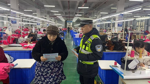 凤凰新闻网1月15日讯(通讯员 龚新 张露思 )为切实提升农村地区群众交通安全意识,有效预防和减少道路交通事故的发生,1月15日,凤凰县公安局禾库派出所组织民辅警开展“敲门行动”,走进辖区企业开展交通安全宣传活动,将交通安全知识送到群众家门口。