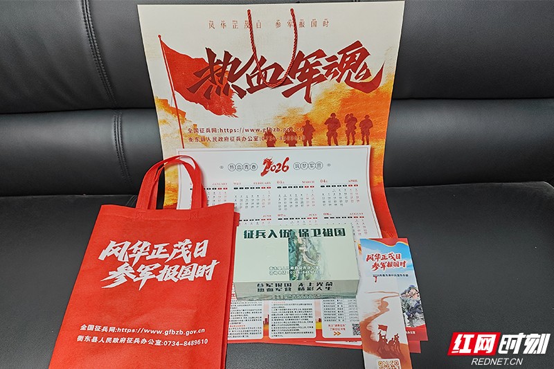 为破解传统宣传覆盖面窄、渗透力弱的难题,衡东县征兵办精心设计制作包含征兵书签、征兵手册、征兵挂历、征兵抽纸、征兵购物袋的“征兵宣传五件套”,将入伍条件、报名流程、优待政策、发展前景等核心信息融入日常用品。这些设计精美、实用性强的宣传品,通过集市发放、屋场派送、快递夹带等方式,让征兵政策“看得见、摸得着、用得上”,实现“生活用品传政策,潜移默化燃激情”的宣传效果。
