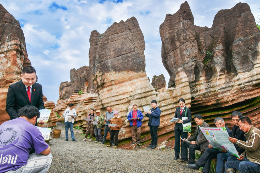 近日,湖南省张家界市永定区人民法院澧水环境资源法庭干警走进尹家溪镇红石林村,为村民宣讲生态环境法典法律知识。同时,干警从砂岩峰林地貌保护,严禁非法排放、倾倒或者处置污水、污泥、废物、生活垃圾等,随意倾倒引发的污染链条(水源→生态→地质→健康)危害性方面展开详细解读,引导群众树立正确的环保理念。