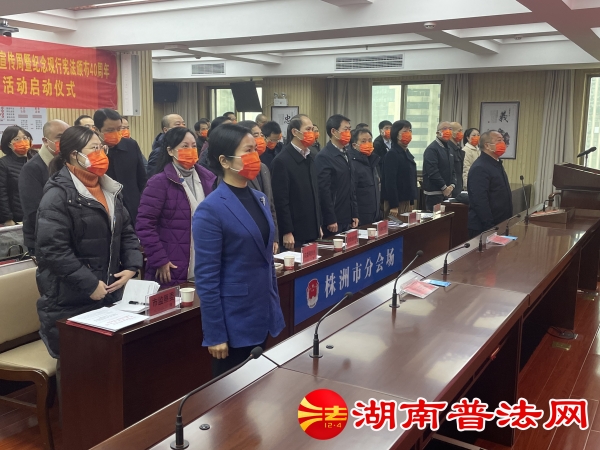 湖南普法网12月7日讯(通讯员 汤雯 颜素)12月7日上午,正值今年“宪法宣传周”活动期间,株洲市2022年宪法宣传周暨纪念现行宪法颁布40周年宣传活动启动仪式在株洲市司法局隆重举行,全体与会人员庄严肃立,高唱国歌,面对国徽,举起右手,进行宪法集体宣誓,市委常委、市委宣传部部长、市委全面依法治市委员会守法普法协调小组组长江小忠隆重宣布:株洲市2022年宪法宣传周暨纪念现行宪法颁布40周年宣传活动正式启动!掀起了宪法学习宣传活动的新高潮。