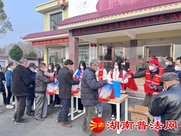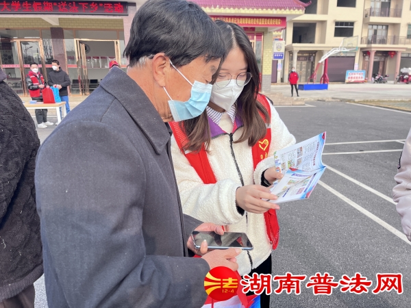 湖南普法网讯(通讯员 谢叶子 谭莹)2023年春节即将来临,为营造欢乐祥和的节日氛围,切实提高农村群众法治意识,进一步加强农村法治宣传教育工作。1月6日,祁阳市司法局组织16名大学生志愿者在七里桥镇丁庙湾村开展2023年寒假“送法下乡”活动。