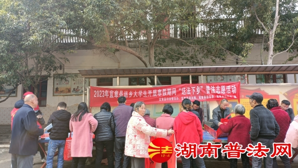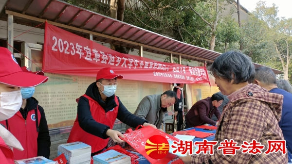 湖南普法网讯(通讯员 吴绪燕)1月6日,宜章县司法局组织返乡大学生到迎春镇碕石村参加“送文化送法律送健康送温暖”四下乡暨“党的二十大精神十进十联十讲”主题宣传活动,掀起了2023年寒假期间返乡大学生送法下乡的序幕。