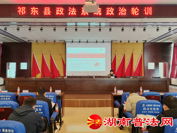 湖南普法网1月6日讯(通讯员 彭宇轩 贺洋霞)1月6日,祁东县司法局局长曾小广应邀为全县政法系统政治轮训作《民法典》专题讲座。