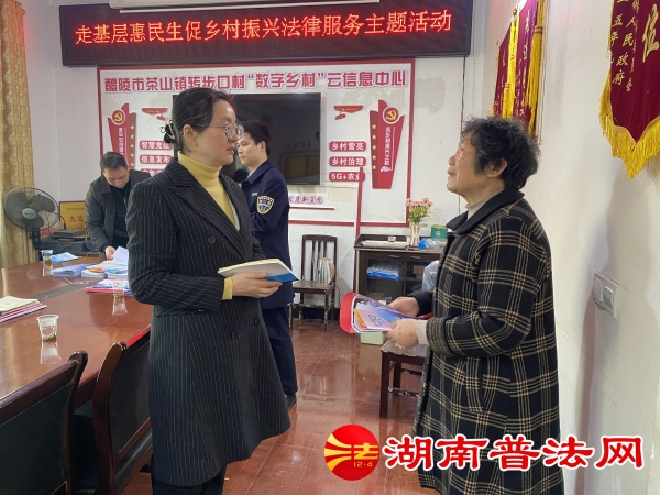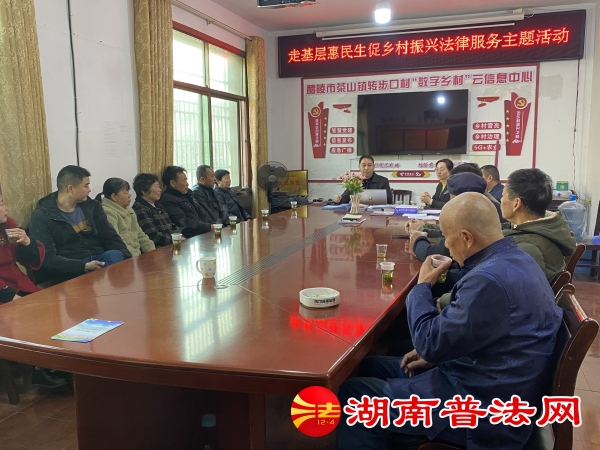 在转步口村村委会会议室,湖南华豪律师事务所周全律师向村民群众宣讲党的二十大精神、乡村振兴等有关政策,株洲市律师协会副会长、湖南华豪律师事务所黄碧华律师就群众关心的婚姻家庭、人身损害赔偿、借贷纠纷、帮信罪、劳动保障等方面的问题进行法律知识讲解。同时就民法典相关知识为群众答疑解惑,教育引导群众遇到问题时要运用法律的武器维护自己的正当合法权益。