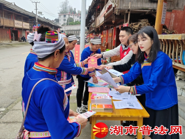 湖南普法网讯(通讯员 龙文才 李林洁)为进一步提升少数民族地区妇女的法治意识和维权能力,近日,“建设法治三锹 巾帼在行动”主题活动在三锹乡新时代文明实践广场展开。乡妇联、司法所、巾帼志愿者及村民共计80余人参加此次活动。
