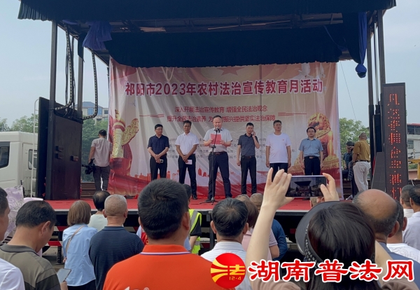 湖南普法网5月19日讯(通讯员 谢叶子 张凌云)5月19日上午,祁阳市2023年农村法治宣传教育月活动启动仪式在白水镇举行,标志着一系列以“深入开展法治宣传教育,增强全民法治观念,提升全民法治素养,为乡村振兴提供坚实法治保障”为主题的农村法治宣传教育活动将在全市全面铺开。市人大常委会副主任陈彬出席本次活动并讲话,市人民法院、市人民检察院、市公安局、市司法局、市交警大队、市农业农村局、市林业局、市市场监督管理局、市信访局、市交通运输局、市税务局、市法学会等19个单位参加启动仪式。