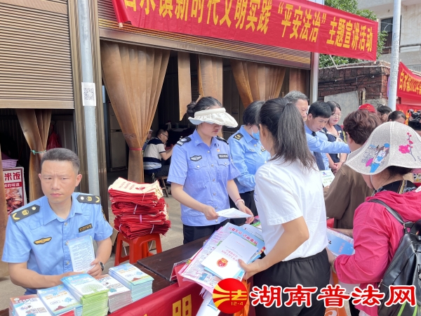 活动现场,祁阳祁剧团以群众喜闻乐见的祁阳小调、群口快板、歌舞、小品等多种多样的节目形式,寓教于乐的向群众宣传法律,灌输法治理念,祁阳小调《好借好还》、快板《法治信访创和谐》等法治文艺节目将活动推向了阵阵高潮,为白水镇人民送上了一场法治文化盛宴。工作人员和“法润三湘”志愿者们通过给群众热情发放各类法治宣传资料、接受法律咨询、提供法律服务等方式,向农民群众重点宣传民法典、反电信诈骗、食品安全法、道路交通安全法、信访工作条例等与农民生产生活密切相关的法律法规。