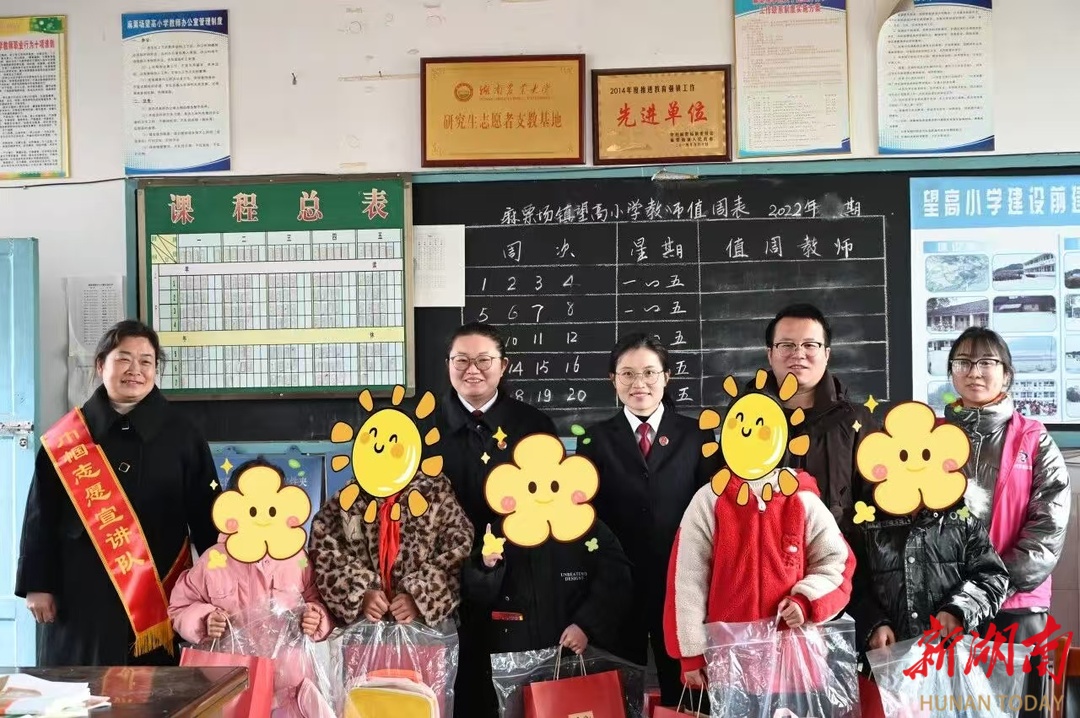 花垣县人民检察院联合县妇联、县司法局为农村留守儿童送上开学用品。